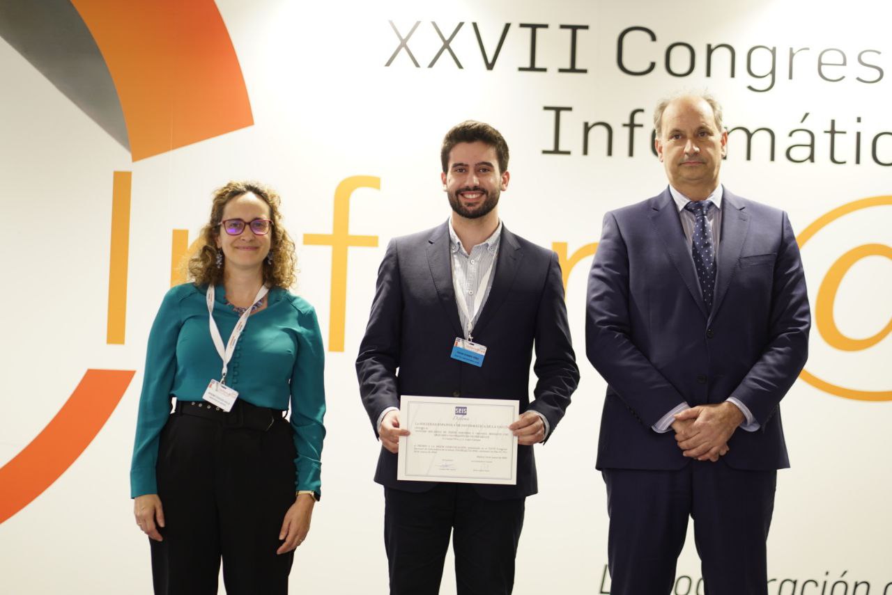 - Premio a la mejor COMUNICACIÓN SECCION JOVENES INVESTIGADORES: Inteligencia Artificial en la caracterización de tumores: Caso de Uso del HUVR en el proyecto EUCAIM M. GONZALEZ LOPEZ, C. ALVAREZ ROMERO, C.L. PARRA CALDERON, F.J CASTELL MONSALVE