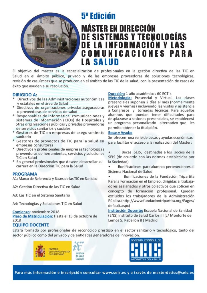Máster en dirección de sistemas y tecnologías de la información y las comunicaciones para la salud