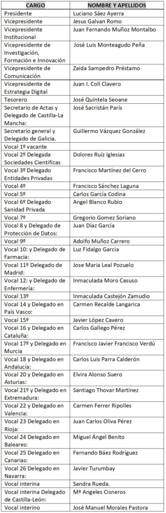 La Sociedad Española de Informática de la Salud estará regida y representada por una Junta Directiva que tendrá la siguiente composición mínima: